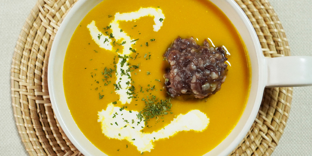あずきとかぼちゃは大の仲良し、発酵あずき添え かぼちゃスープの作り方です。 -