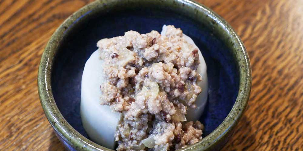 甘くて旨い肉味噌、発酵あずき肉味噌仕立ての大根煮のレシピです。 -