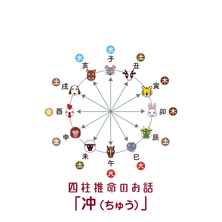 連載5 「冲(ちゅう)」 冲があることを知るだけでも自分自身を大きく成長させるきっかけになり得ます。 今回は四柱推命で要注意な動き、衝突や揺れを意味する「冲(ちゅう)」についての話です。 特に運気を左右する地支冲は、十二支を環状に並べた時に正... -