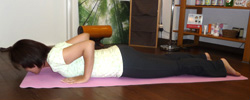 ③ヒジを閉めたまま、ゆっくりと息を吐きながらうつ伏せの状態に戻ります。