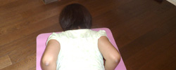 お尻が突き出てしまわないように、お尻、腹筋を引き締めましょう。