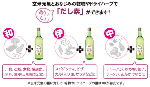 玄米元氣のおいしい教室”に参加した時、「玄米元氣」で作る「だし素」を教えてもらって、作り方も簡単だし、いろいろ使えてしかも美味しくなるので、それから常備するようになりました。
