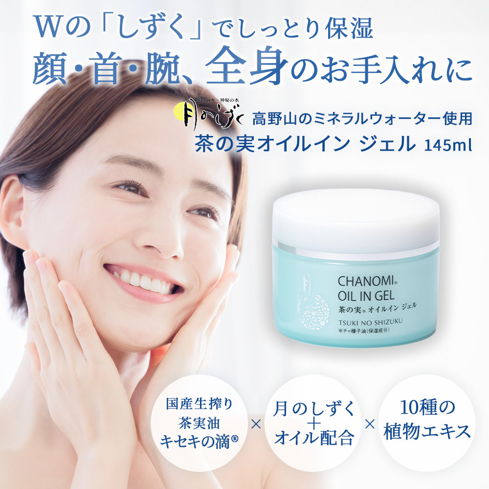『月のしずく化粧品』シリーズでもお伝えしておりますが、『茶の実オイルシリーズ』も同じように、まず『神秘の水 夢』を肌水としてスプレーしてからお使いいただくと、よりなじみやすくて潤いを感じていただけると思います。どちらも、お水との相乗効果で肌をより安定させるので、ぜひ習慣化してください。