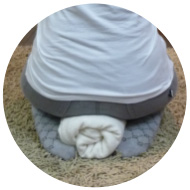 ★足がしびれてしまう場合は、バスタオルを太く巻いてお尻の下に入れて座ると楽になります。